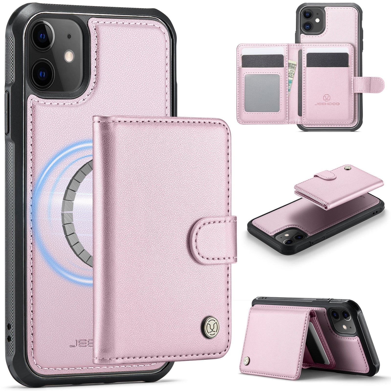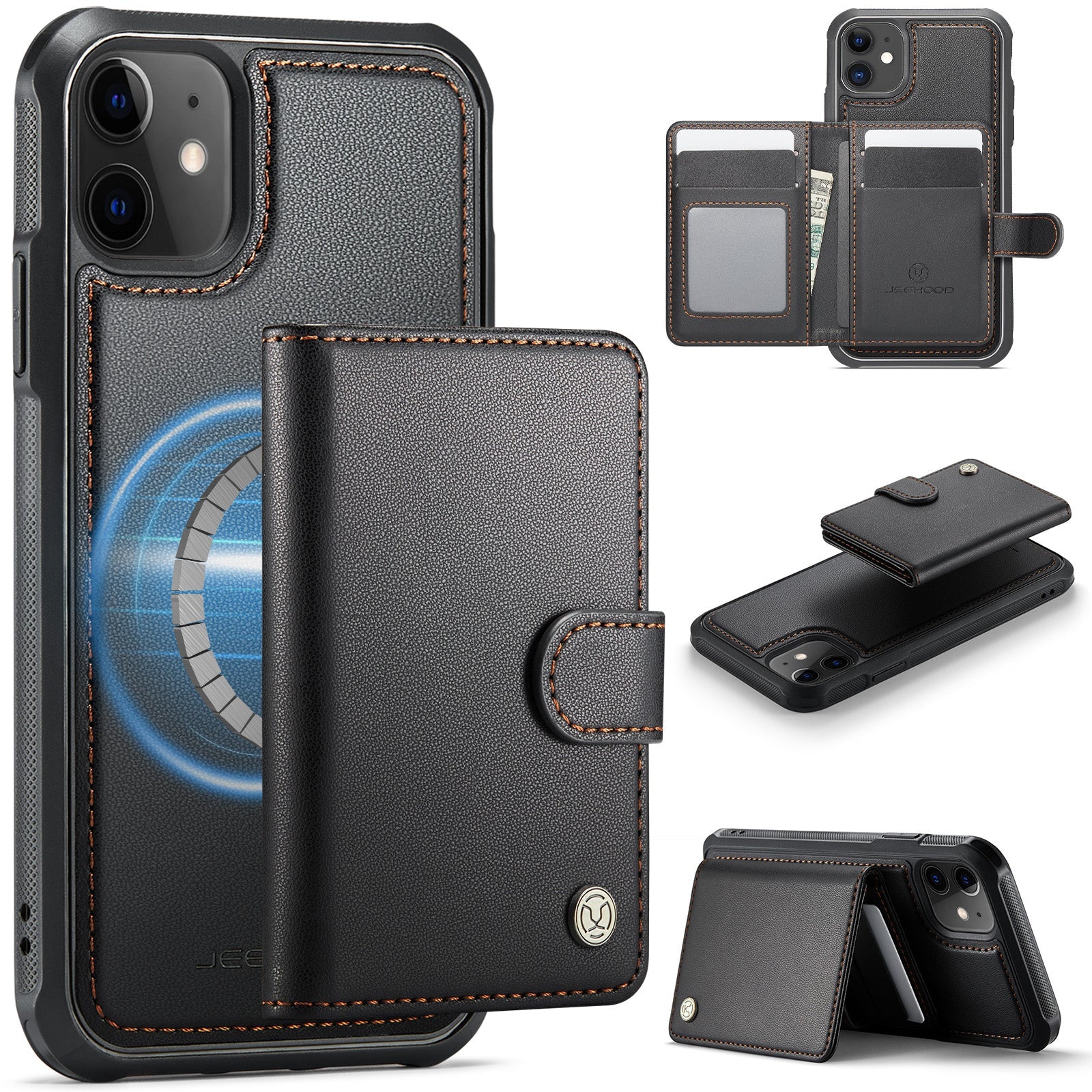 New 2-in-1 RFID Blocking Card Holder Leather Phone Case for iPhone 12